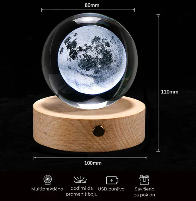 2 u 1 Kristalna Lopta sa 3D Modelom Meseca
